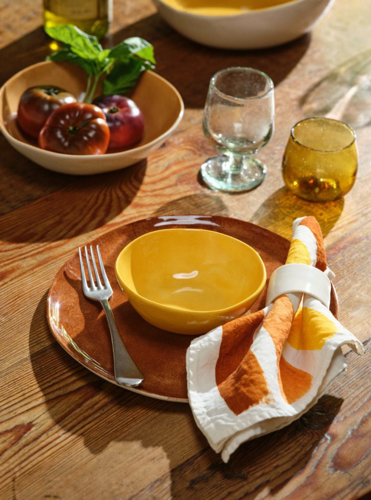All the way from Gambettola, Italy: the latest delivery of colorful porcelain ceramics and linens from the Bertozzi family. In addition to our typical fall buy of Bruno and Giallo, we went deep into more fall forward colors such as the suede-like Marrone and the rich blue Azzurro. While a few pieces are online, the breadth of this collection is available to browse at Wild Life.