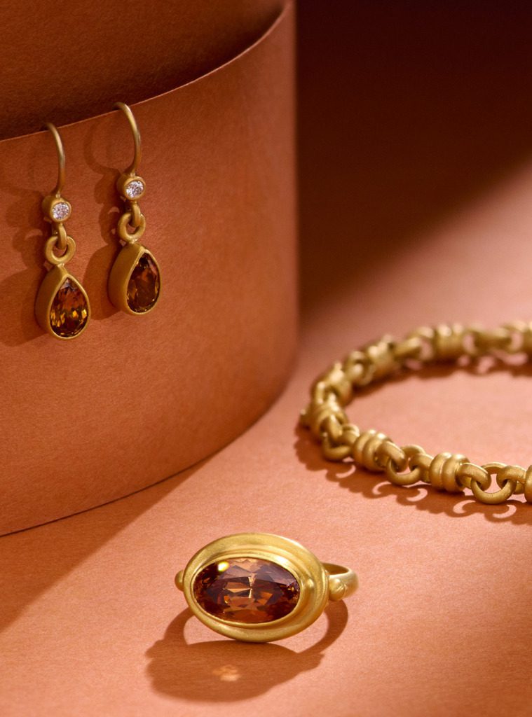 From the bench of Santa Fe jeweler Denise Betesh comes a wash of blue and white. Brilliant diamonds and gemmy sapphires dominate this late-summer capsule collection, all complemented by her matte 22K gold settings. In a return to Denise’s signature, several of these pieces feature granulation—an intensive hand-work process wherein tiny dots of pure gold are fused to add texture to the setting.