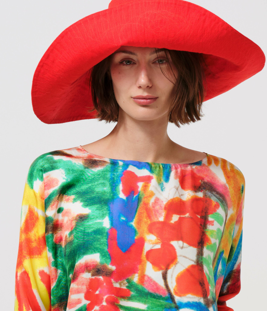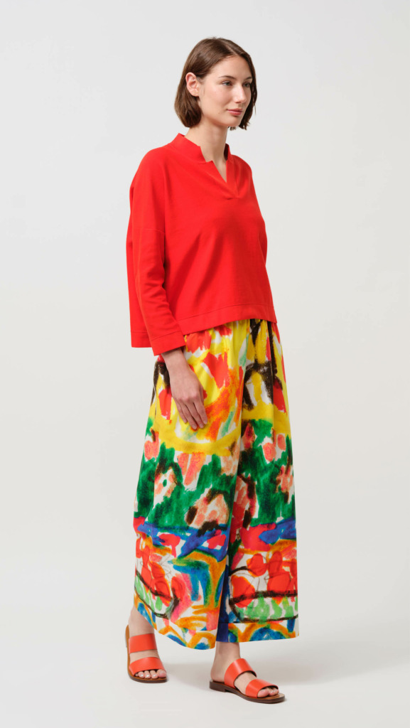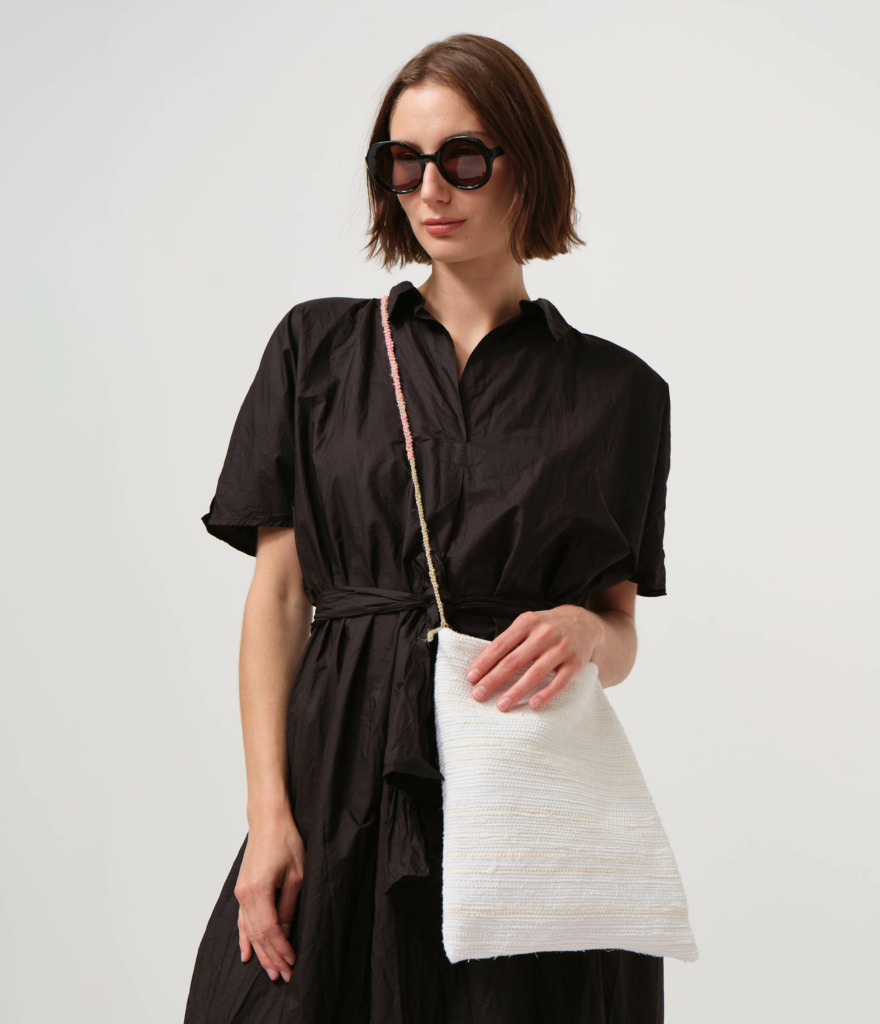 The most important principle of art is arguably unity–a sense of wholeness and coherence fostered when differing elements come together in harmony. Daniela achieves this by sprinkling color and motif throughout her designs. A strip of pattern across the yoke of a dress… matching collars across every top… leftover fabric scraps peeking out from the knots of a hand-crocheted tote. In all styles, we find her silhouettes to be as wearable as they are magically simple–rendered with just a few cuts and flattering on so many body types.