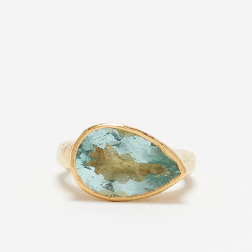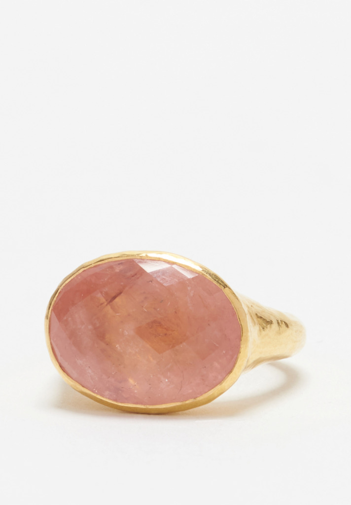 In teardrop aquamarine, flecked brown diamond and peachy morganite, his rings and pendants ultimately feel ancient in their design – as if they have been unearthed from a bygone Shah treasure chest.