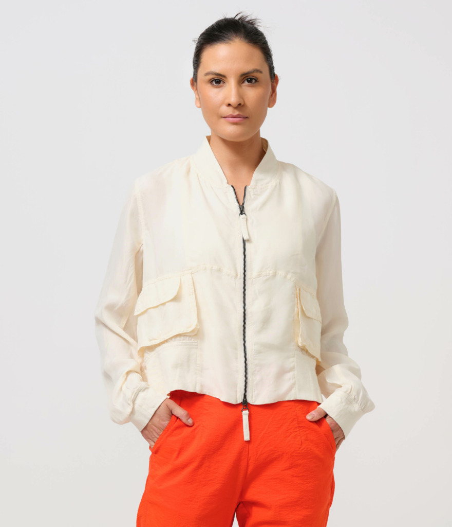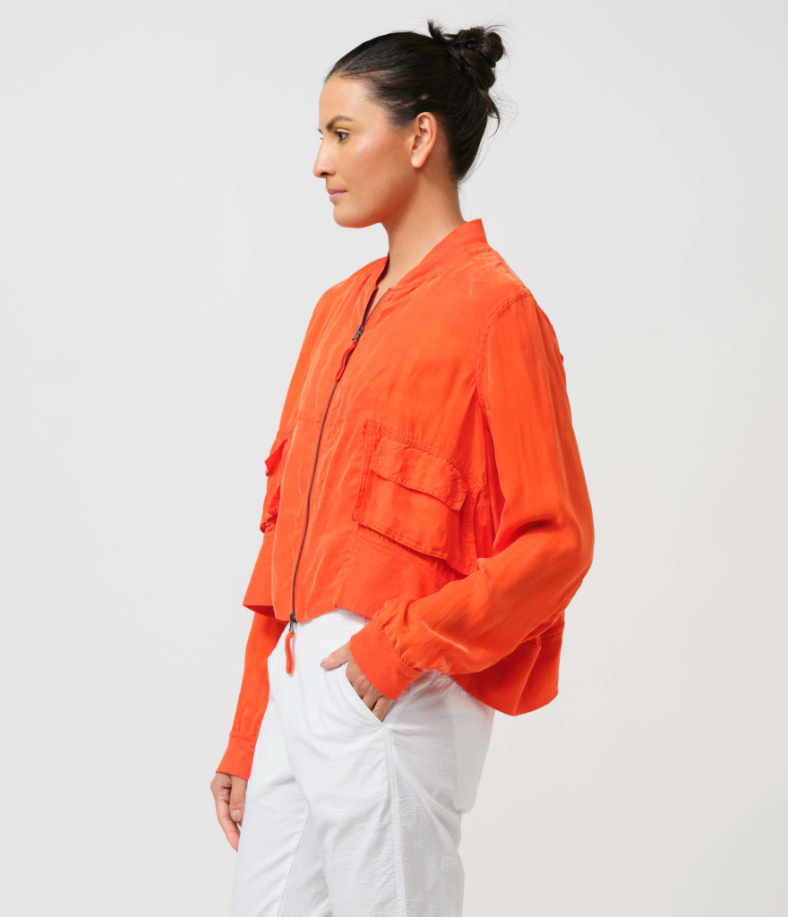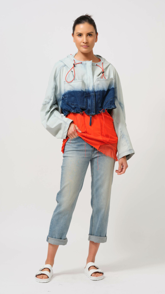 Ombré plays a big part in the delivery, reading as equal parts ocean wave and acid wash. Find within the collection many cool and wearable pieces: tees that resemble hard denim, but feel like a favorite cotton shirt; structured jackets made from layered panels to create an armor-like silhouette. Zings of orange pop across the designs in details big and small, from drawstrings and zipper pulls to sporty pull-on pants and soft jackets.
