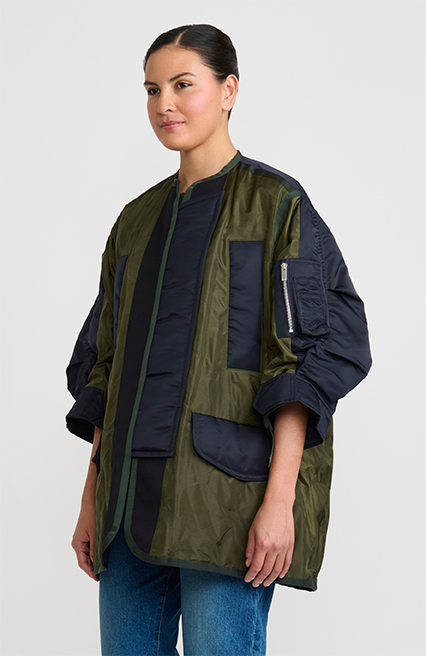 The piece might be finished with oversized military pocket details, studded with silver rivets or fan out in the back in a wave of delicately pleated fabric – unexpected is to be expected when it comes to Sacai.