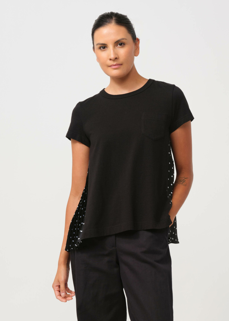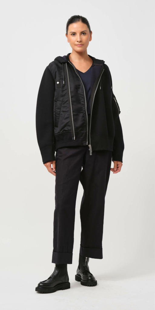 Even after close to 50 Sacai collections, we can’t help but be wowed by Chitose Abe’s construction. To pleat and fold and stitch together so many faceted layers in one garment, and still have it float with such grace over the body, is mastery. Sacai pieces may have roots in the highest of avant garde silhouettes but they are less complicated to wear than they look, offering high-flying design with minimal styling effort.