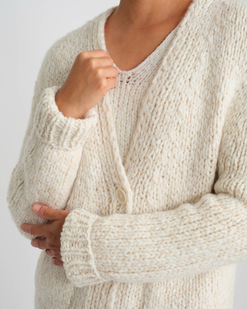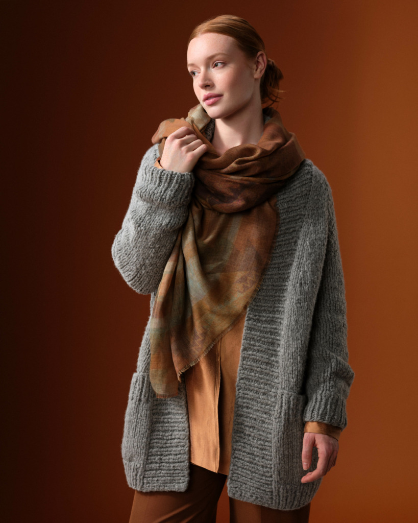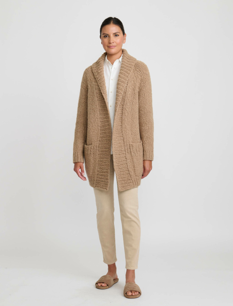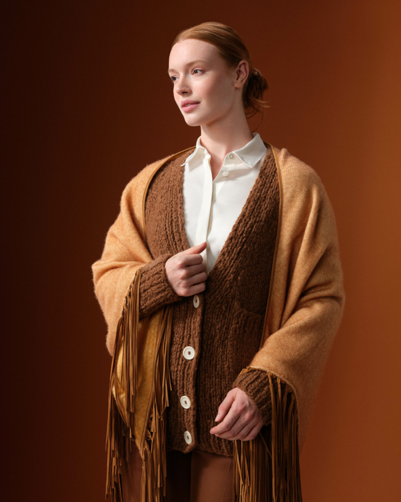 Recalling vintage and classic silhouettes with a contemporary twist, Wommelsdorff’s collection ranges from lush, oversized wraps to closely tailored cardigans and just about everything in between.