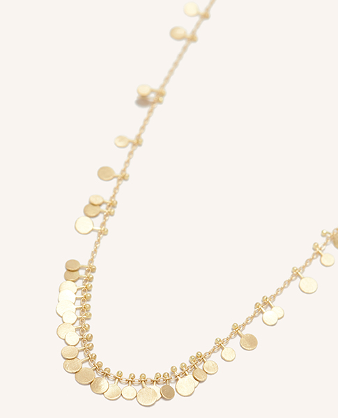 Just as captivating as a string of diamonds or pearls, her signature gold dots are a breath of fresh air in the realm of modern jewelry, wherein the roles of precious gems and metals are often set in stone.