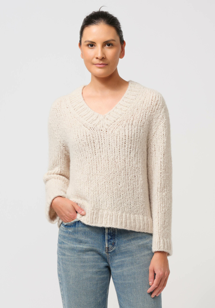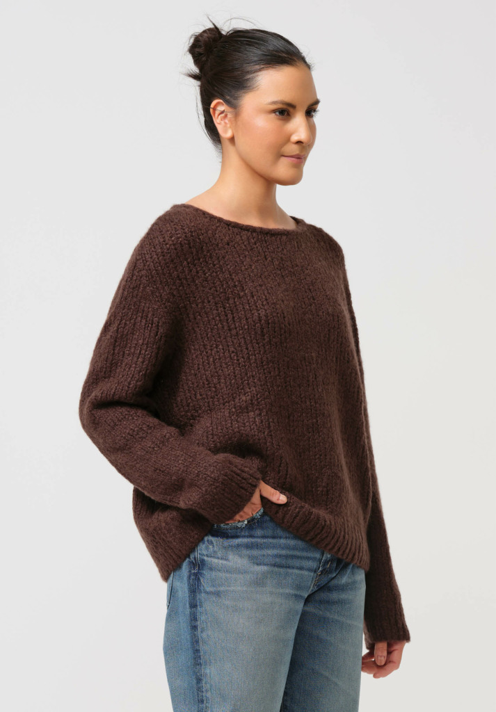 Designer and founder, Anne Schramm, works with only the best cashmere, sourced from producers who prioritize low stress for the animals and low environmental impact. To achieve Wommelsdorff’s rich colors, Anne sends swatches of inspiration to a long-time yarn supplier. Together they work intensively to develop the season’s palette. From there, a small team of knitters handknit every piece, rendering each cashmere sweater unique.