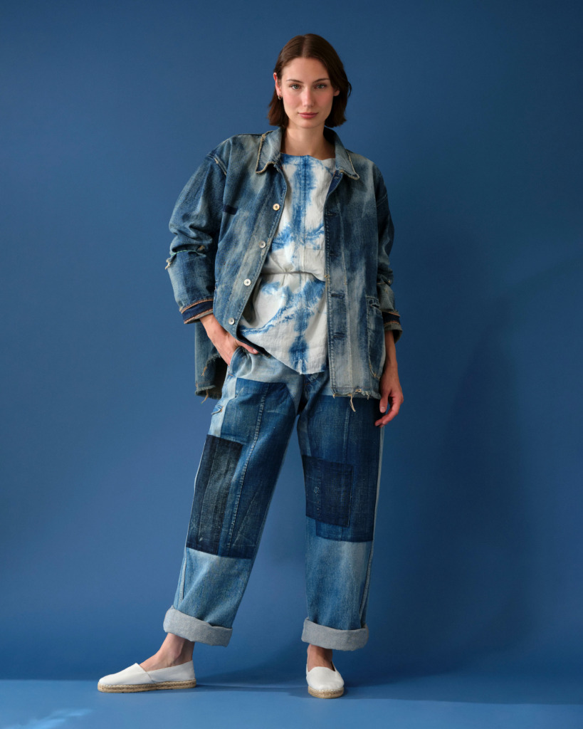 Cottle’s Spring/Summer 2025 collection is inspired by the beach lifestyle. Working with lightweight denim and a special hemp cotton blend, these pieces are sun-bleached and hand-finished with patchwork and a myriad of stitching details.
