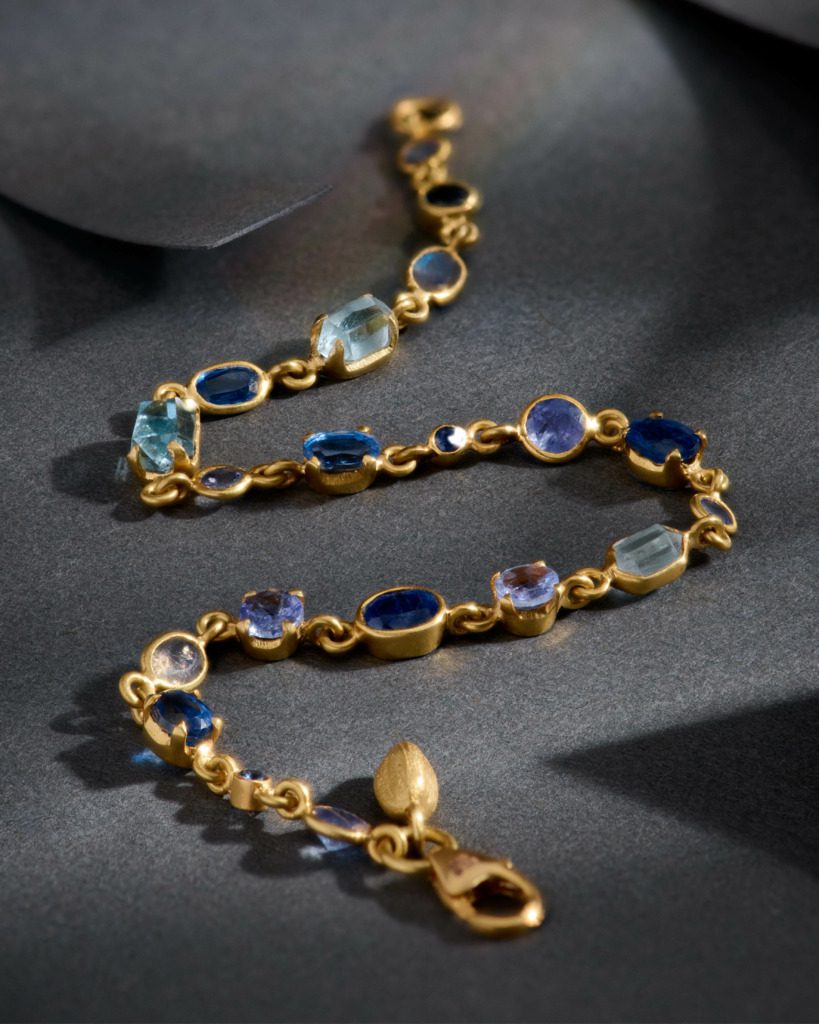 18K Gold ‘Indigo’ Bracelet with Kyanite, Tanzanite, Aquamarine, Sapphire, Labradorite & Blue Diamonds