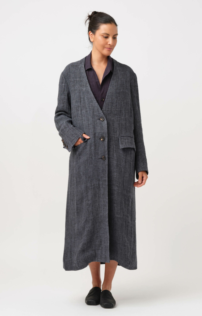 Ziggy Chen is a designer of deep humility. He describes his own personal style as “lazy and comfortable,” an aesthetic perhaps at odds with the photos seen of the artisanally-dressed designer wandering his studio in Shanghai. His success is rooted in a keen sense of balance: ease and effort, nuance and emphasis, practical and sumptuous. What seems laissez-faire when crafted by such a skilled hand perhaps only feels that way because it is so elegant in its drape, so naturally flattering to wear or maybe just so, so soft against the skin.