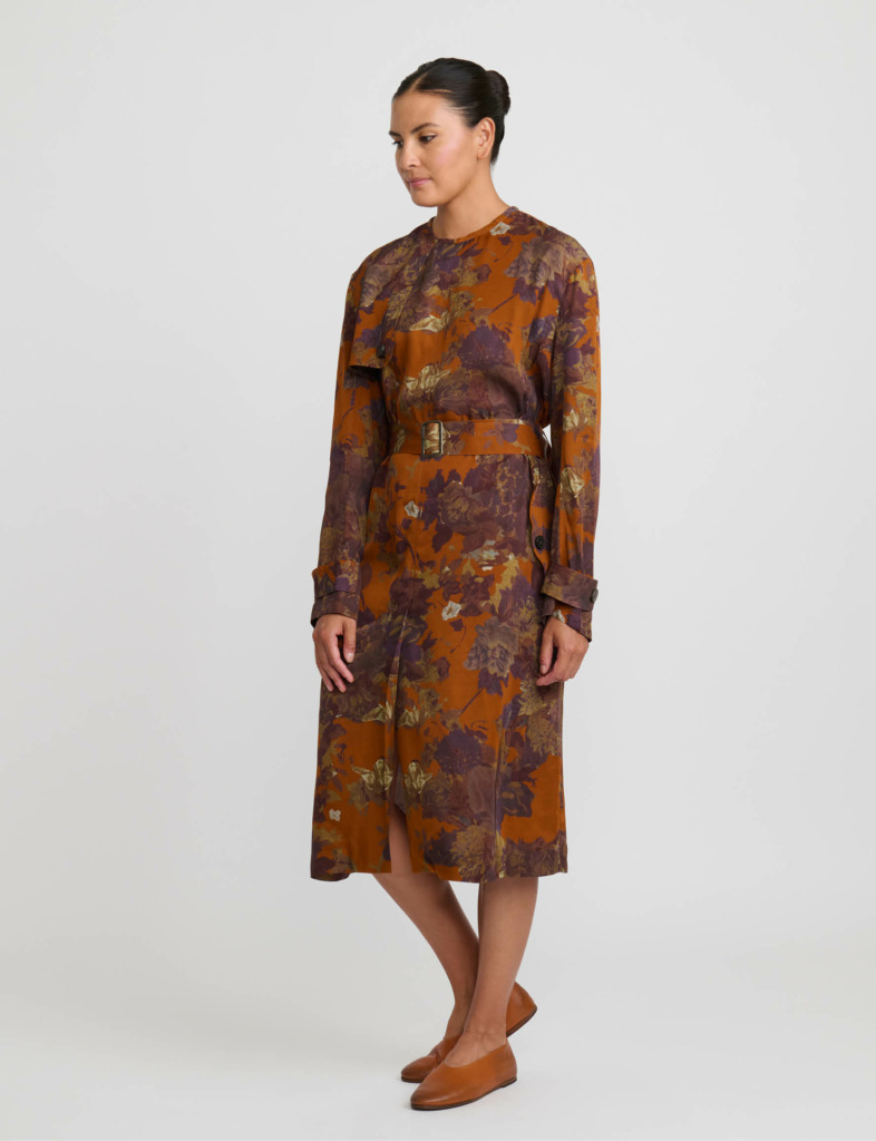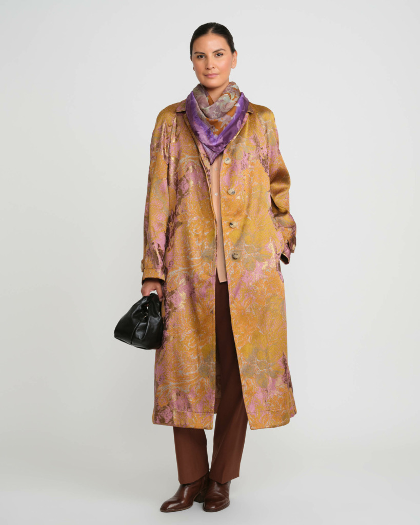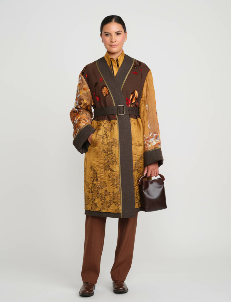 The light caught on a gilded jacquard is just as important as how a blouse slips against the skin, the way silk harmonizes against silk or the nostalgia evoked by his silhouettes. He truly emphasized hearing alongside feeling and seeing in the runway show for this collection – the catwalk was set behind a live performance by the experimental drumming of Belgian musician Lander Gyselinck. However, when experiencing the pieces independently, Dries Van Noten’s interest in perception and memory comes first to mind.