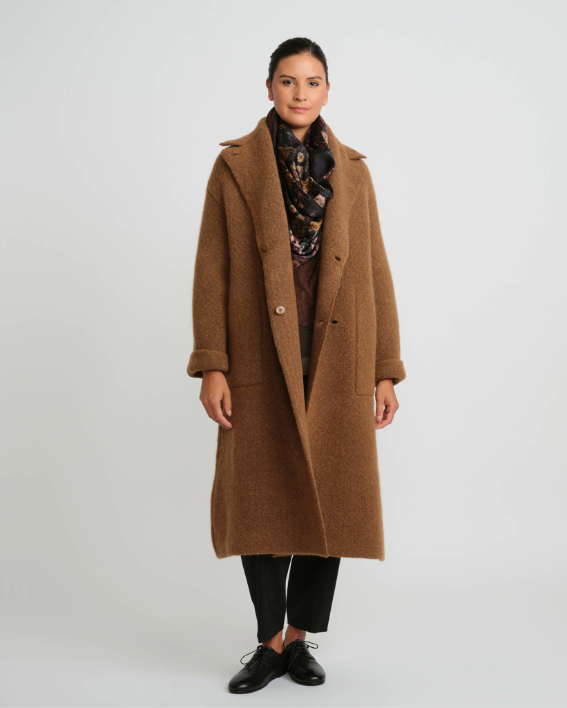 Boboutic is known for the sheer loftiness of their knits. Squeezing a sleeve is akin to sinking your fingers into the fleece of the world’s softest goat. The plush is so mesmerizing, we are often at a loss to describe it (although our favorite descriptors lay somewhere between “marshmallow” and “cloud”). This effect is achieved through Boboutic’s unusual and architectural approach to knit. Boboutic describes this practice as “an ideal medium”. They utilize the versatility and flexibility of yarn to build and sculpt their garments as if they were clay.