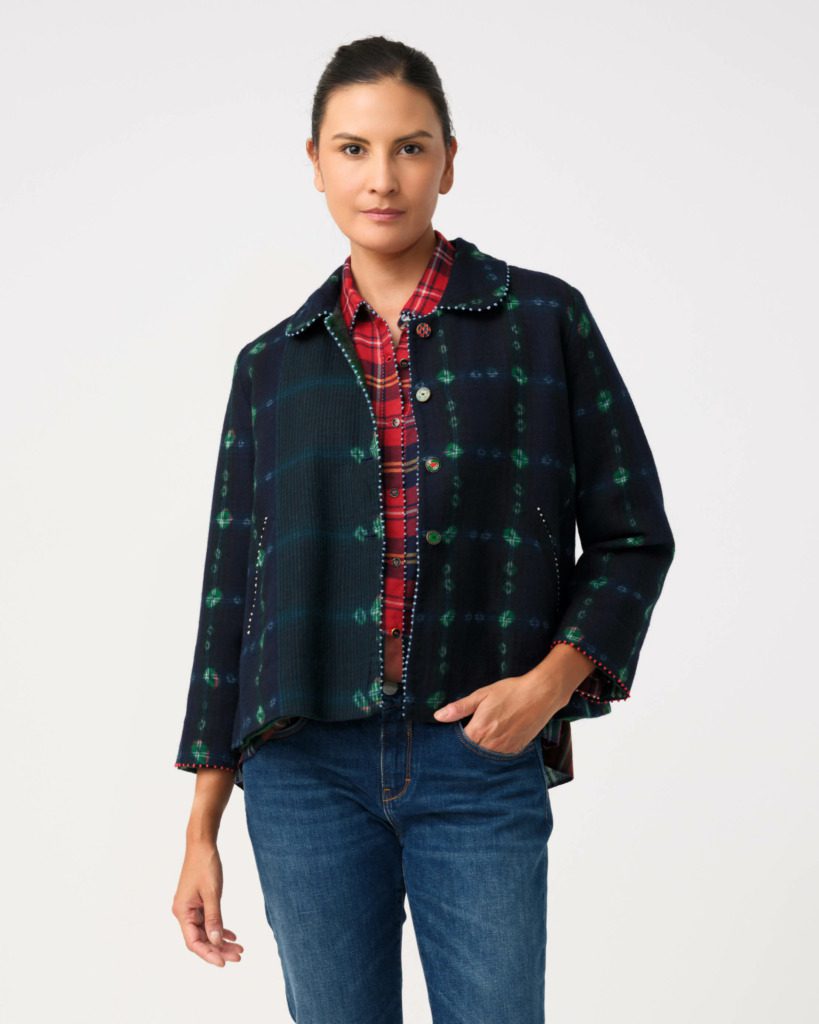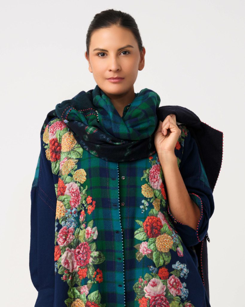 In Péro’s latest delivery, we are called to wander landscapes lush and misty–Ireland, Scotland, Newfoundland, Beas Kund… It’s treks like these, through large, uninterrupted vistas studded with wild flowers and stone that delight the imagination, opening the mind to the vast possibilities offered by nature and the world. Aneeth Arora captures these experiences through her own insatiable curiosity, seeking motifs and patterns from all over the world to inform her designs. This Fall/Winter 2025 collection from her Péro label is Aneeth at her best: cohesive, unexpected, beautifully constructed and just the right amount of playful. Presented via a selection of light jackets, retro-esque coats, floaty scarves and wide-bodied dresses rendered in bold pattern, the collection is quintessentially Péro.