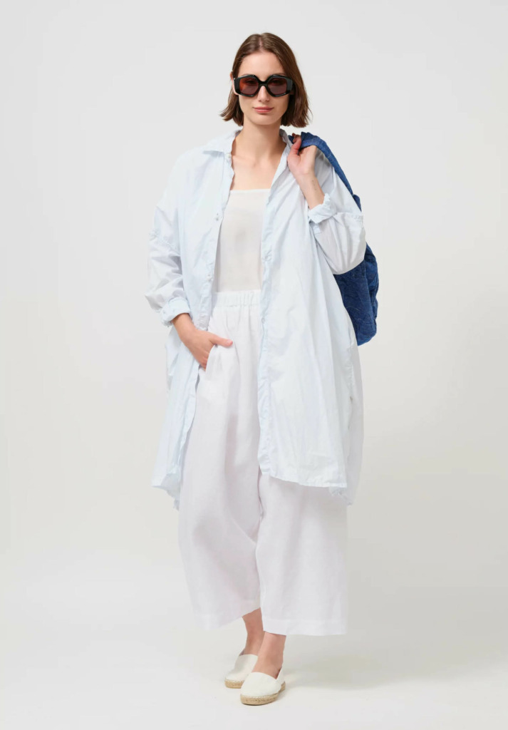 When it comes to simplifying, prioritize goods that are as easy to care for as they are to wear. Don’t get us wrong, the cherished one-of-a-kind silk organza piece (that needs to be delicately dry-cleaned and routinely inspected for snags…) definitely has a place in the rotation. However, for busy schedules and traveling, we prefer something on, off and into the wash without a second thought. Favorites in this sphere achieve style without embellishment and comfort without slouch, in durable, water-friendly fabrics, such as paper cotton and plain-woven linen.