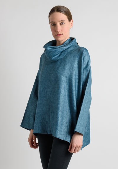 Send my friend a link to Eskandar Linen Cowl Neck Top in Teal