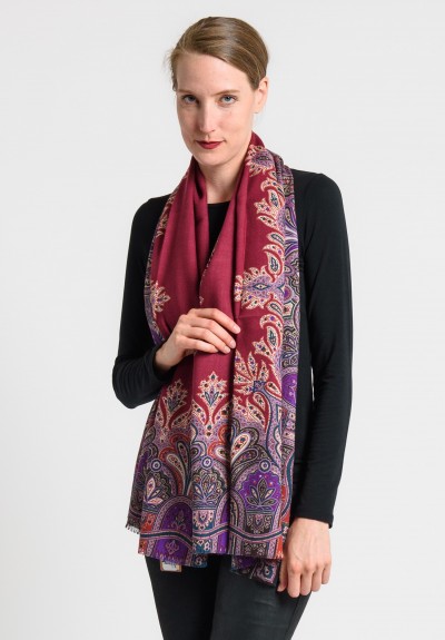 Send my friend a link to Etro Wool/Silk Intricate Paisley Print Scarf in Carmine Red