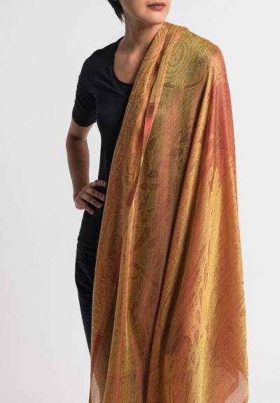 Send my friend a link to Etro Lightweight Cashmere/Silk Subtle Paisley Scarf in Gold/Red