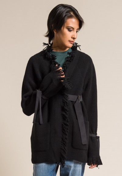 Send my friend a link to Sacai Fringe Wrap Wool Cardigan in Black