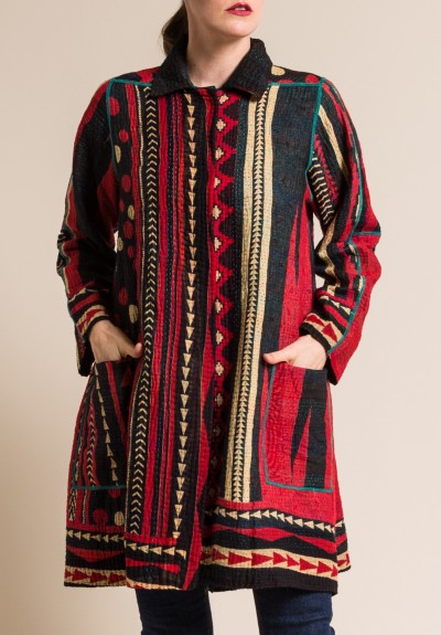 Send my friend a link to Mieko Mintz 4-Layer Ikat Dot A-Line Duster Jacket in Red/Black