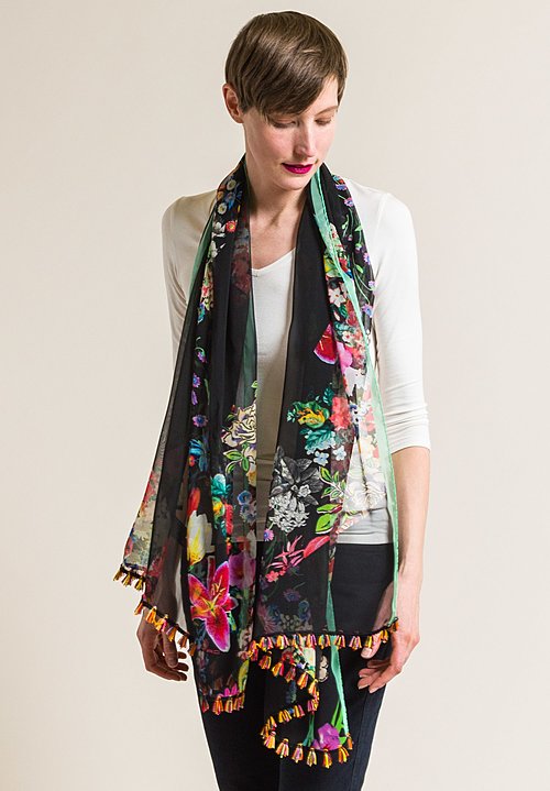Send my friend a link to Etro Silk Sheer Floral Scarf in Black