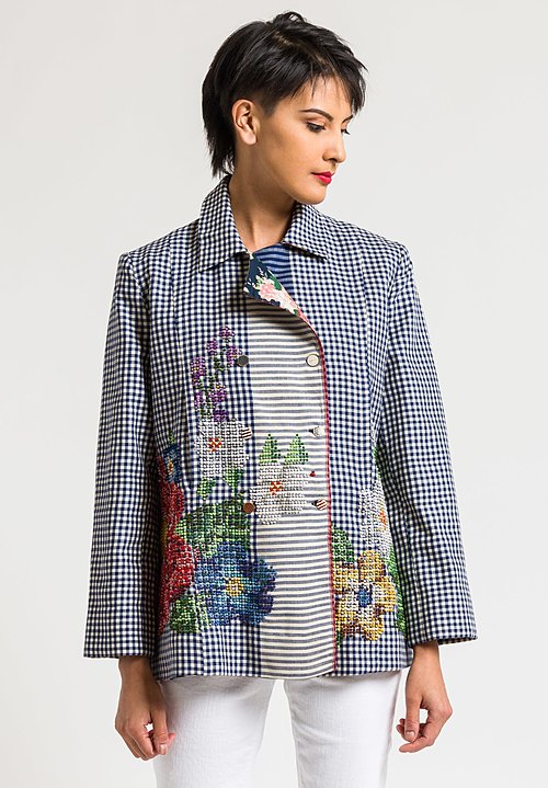 Send my friend a link to Péro Reversible Intricate Embroidered Jacket in Blue Gingham