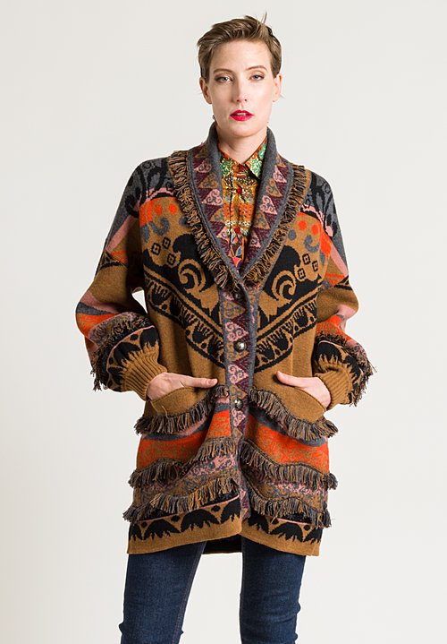 Send my friend a link to Etro Paisley Thick Knit Fringe Cardigan in Ochre
