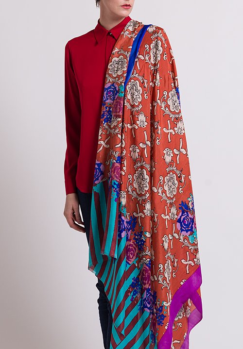 Send my friend a link to Lisa Corti Frayed Edge Silk Scarf Printed in Florence Rust