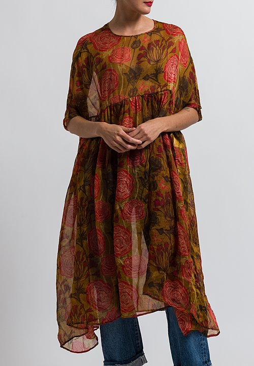 Send my friend a link to Uma Wang Silk Floral Adarda Dress in Mango/ Red/ Black