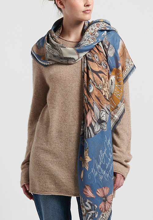 Send my friend a link to Sabina Savage Cashmere Lion and Tiger's Tea Party Scarf in Sapphire/Gold