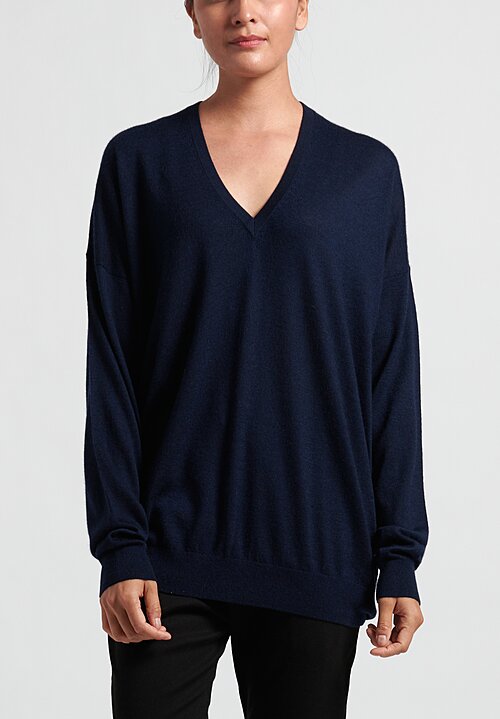 Send my friend a link to Frenckenberger Cashmere Oversized Deep V-Neck Sweater in Royal Blue