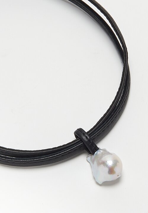 Send my friend a link to Monies UNIQUE Single Baroque Fresh Water Pearl Leather Necklace