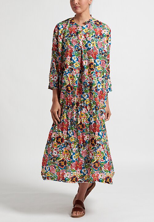 Send my friend a link to Daniela Gregis Washed Cotton Chicory Dress in White, Blue, Red and Yellow Flowers