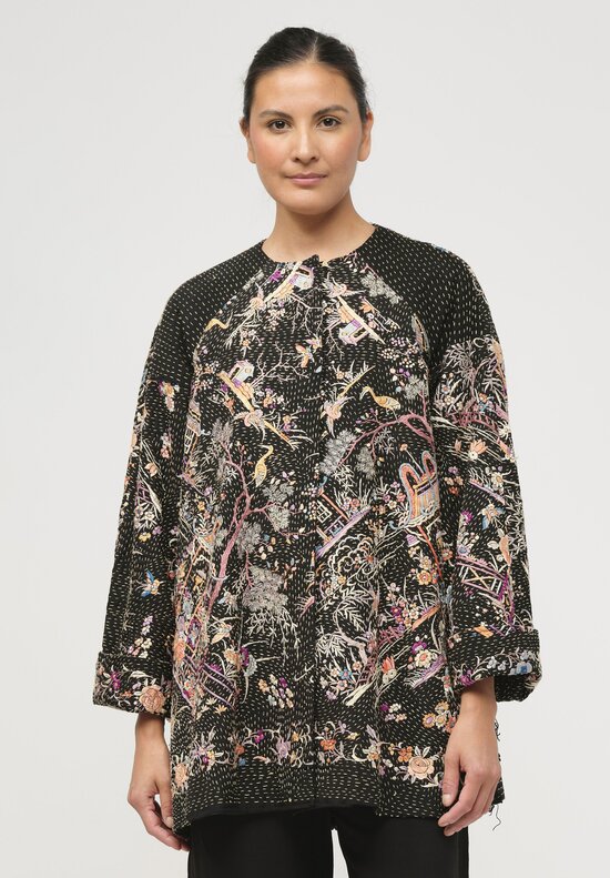 Send my friend a link to By Walid Antique Silk Piano Shawl Jackie Jacket in Black & Peach
