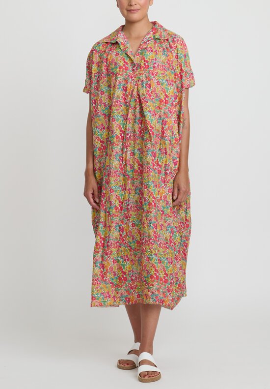 Send my friend a link to Daniela Gregis Washed Cotton Abito Rossella Dress in Green, Orange and Fucsia Flowers