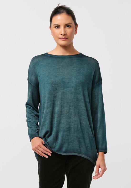 Send my friend a link to Avant Toi Cashmere & Silk Hand Painted Crewneck Sweater in Nero Provence Green