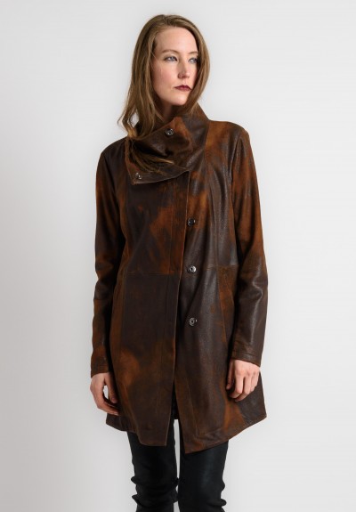 Send my friend a link to Gimo's Long Distressed Leather Jacket in Brown