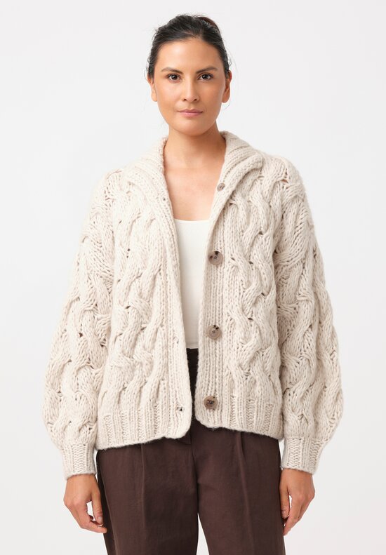 Send my friend a link to Iris Von Arnim Handknit Cashmere Silk Helin Cardigan in Alabaster White