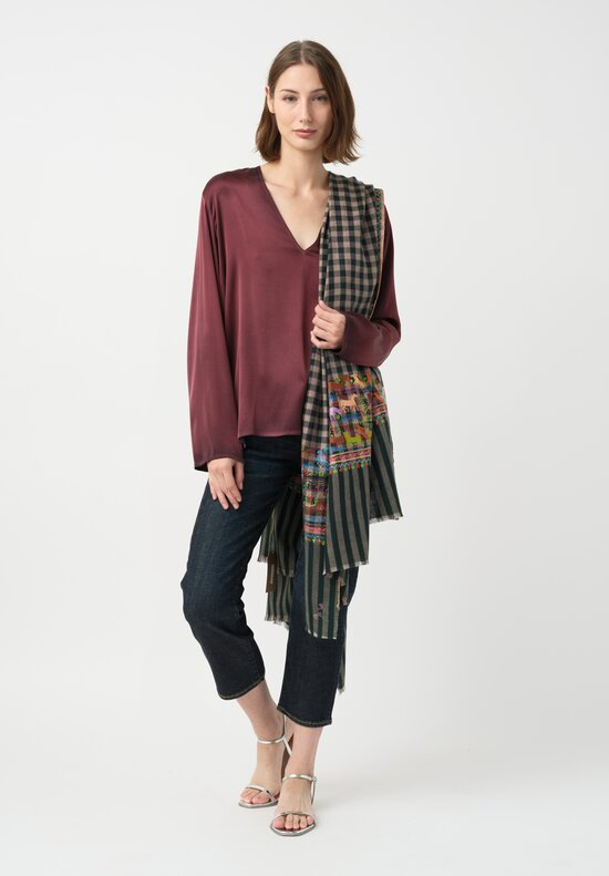 Send my friend a link to Yaser Shaw Cashmere Kashmiri Embroidered Scarf in Forest Green Gingham with Animal Motifs