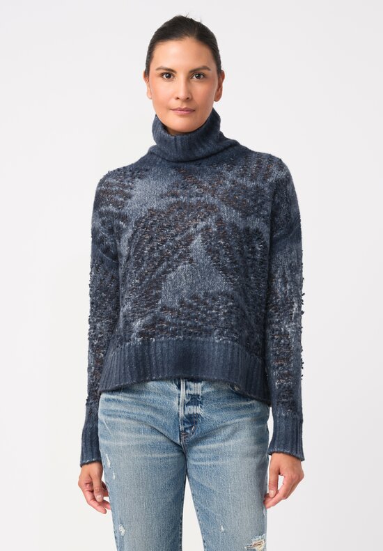 Send my friend a link to Avant Toi Cashmere & Alpaca Hand-Painted Macchie Turtleneck in Nero & Fiume Blue