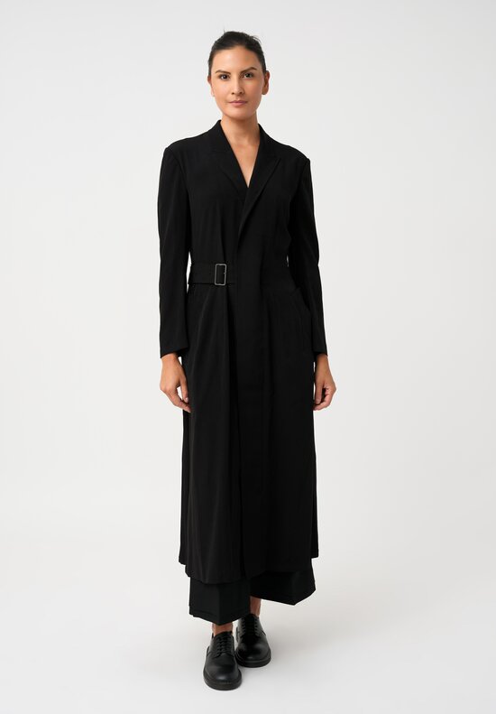 Send my friend a link to Yohji Yamamoto Crêpe de Chine Duster Trench Coat in Black