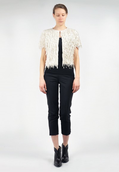 Send my friend a link to Brunello Cucinelli Laser-Cut Silk Fringe Shirt in Vanilla