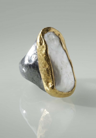 Send my friend a link to Like Behar Free Form Keshi Pearl Sterling and 24k Gold Troy Ring
