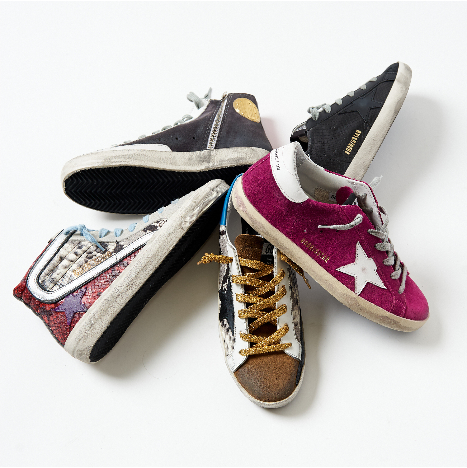 Golden Goose sneakers were some of the first deliberately scuffed sneakers to appear on the market in 2000, starting a trend and cultivating a cult following. Created by two Venetian designers and fashion newcomers, Francesca Rinaldo and Alessandro Gallo, Golden Goose has gone above and beyond in producing innovative and spirited products inspired by the combination of modern and vintage style. Popular styles includes the superstar sneakers, hi-stars and more!