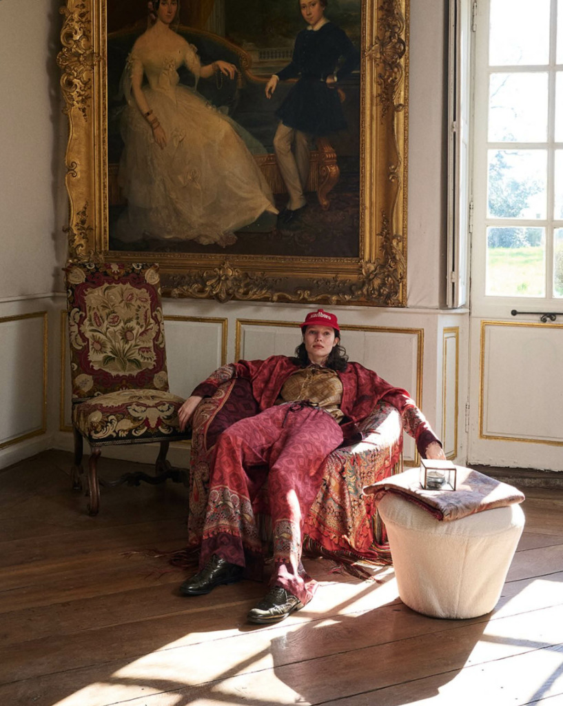For Uma Wang’s Fall/Winter collection, the designer called upon Piero della Francesca’s Madonna del Parto, a Renaissance era fresco depicting the pregnant Madonna in a stance of strength. A powerful symbol for the divine feminine, Uma muses on the painting’s motifs to define her own concepts of grit, presence and the responsibility of “bearing”–burdens, authority and babies included. As cleverly noted by Wang Zhi for Vogue, this collection seizes on the idea of women ‘taking up space’ and creates the armor ideal for doing so.