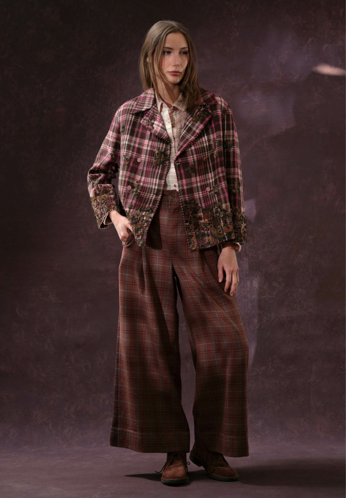 Péro’s beaded plumeria stretches across the collection. Their florals are a reinterpretation of the vintage motifs of their spring delivery, rendered in a richer palette of chocolate and pink.