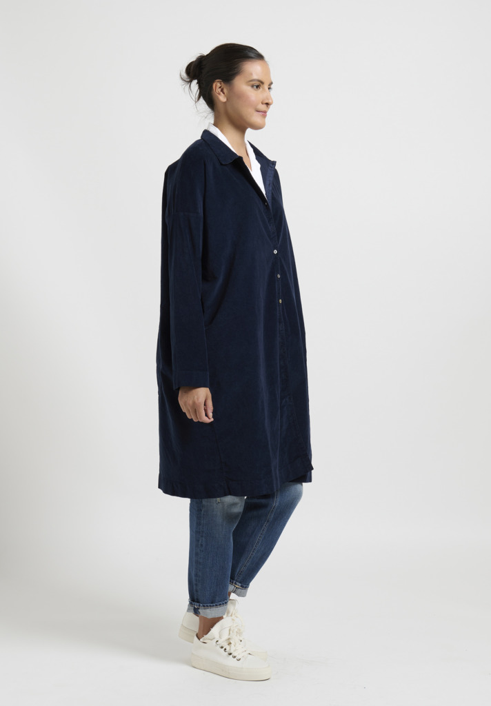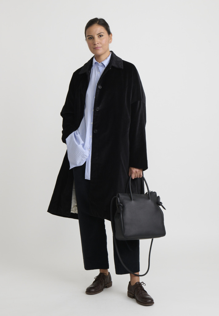 From the streets of Paris, Casey Casey offers a glossy, black cotton velvet coat in their typical sharp, well-tailored style.
