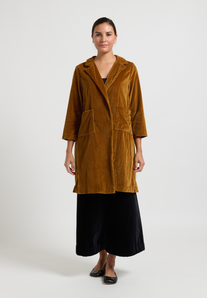 Album di Famiglia, the celebrated family-led Italian brand, has included jackets and coats made from cotton velvet blends in this rich hue.