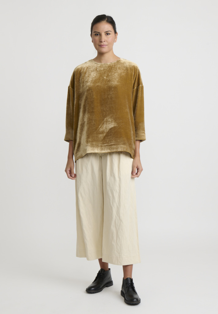 Another Italian cotton velvet offering comes from Daniela Gregis with her sumptuous ochre tops and pants that feel like butter.