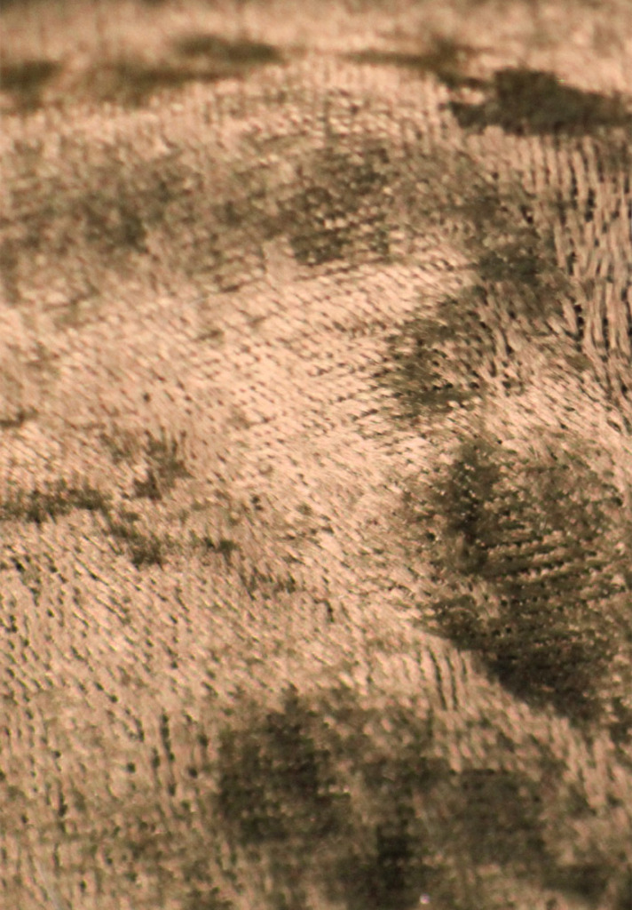 By weaving together materials of varying thicknesses on a special loom and then being cut apart, the lush texture of the fabric is a result of the short pile created during its production process.