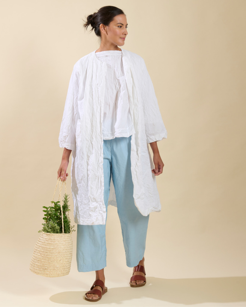 Daniela presents textuality across this delivery with light cottons contrasted against a selection of cotton velvets and nubby cashmere.