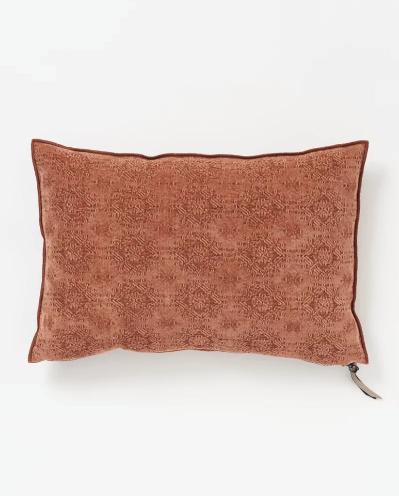Michèle and her close-knit team of textile experts encourage layering their various pillows and fabrics – such as pairing together a ruffled Shaker style pillow with a smooth linen of the same tonal colorway, or a bouquet of velvet and cotton jacquards in complementing tones.